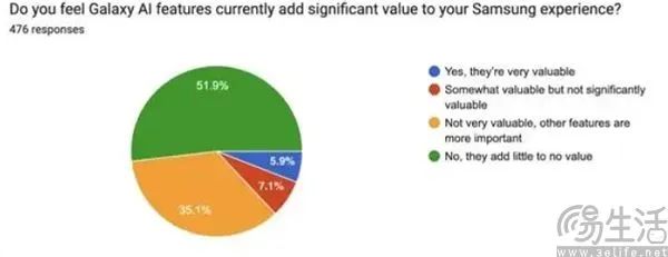 SellCell分别向1000名iPhone用户和1000名三星手机用户发送了相关问卷,数据显示,73%的Apple Galaxyyy87%的Intelligence用户和 AI用户认为,AI功能“不太有价值”或“几乎没有增加任何价值”,对提高使用体验没有实质性的帮助。有86.5%的iPhone用户和94.5%的三星手机用户表示,他们不会为AI功能付费。