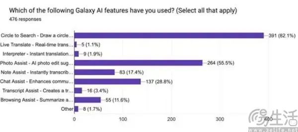 虽然AppleeApple不是智能手机的生产工具, Intelligence、Galaxy AI提供的文档总结、文章撰写、通话总结功能在技术层面确实“高大”,但绝大多数客户不在手机上看文档、写文章,也没有值得浓缩的通话。与Galaxy相比 82.1%的受访客户之所以经常使用AI的“即圈即搜”功能,是因为它是三星与谷歌合作打造的基于移动终端的AI功能。