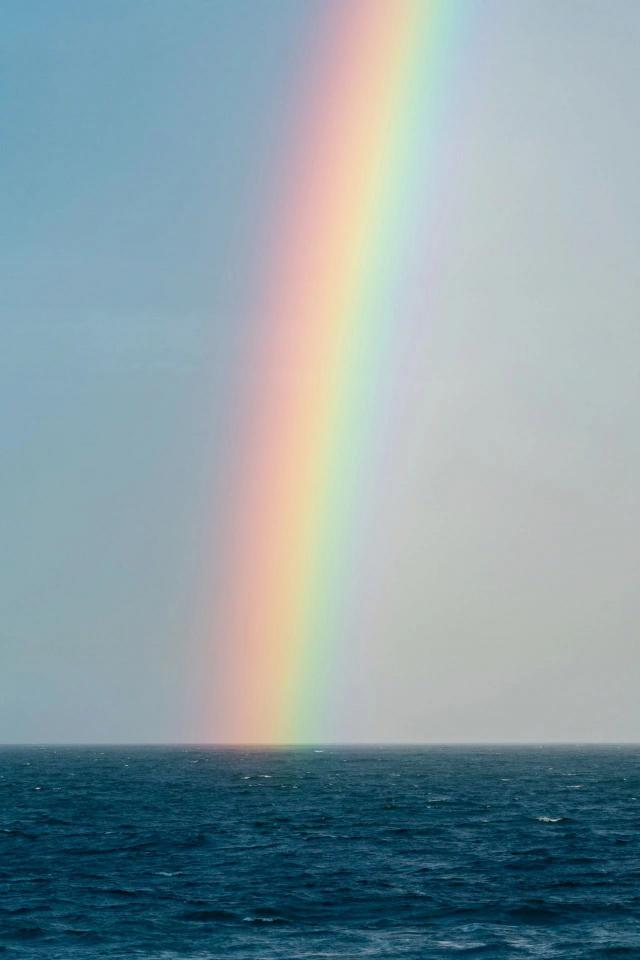 红色,橙色,草绿色 ... 纯净而纯净,轻轻一弯,或架云,或倚着枝丫,就等着有一天雨后,你一抬头,不期而至,露出惊喜的微笑。