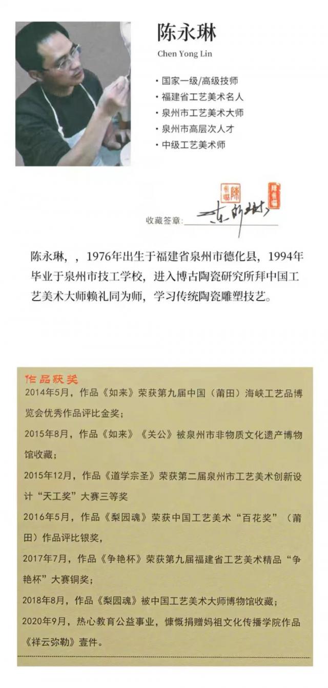 陈永琳大师,师承赖礼从,是我们国家。 * 级 / 高级技师,福建省工艺美术名人,泉州工艺美术大师,泉州市高端人才 ~