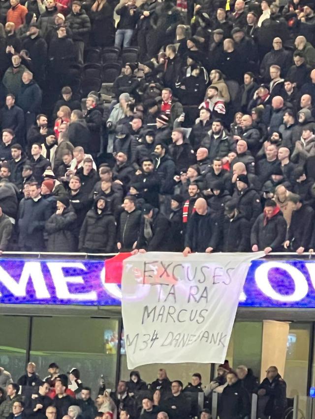 尽管没有进入联赛杯半决赛,但是曼联的球迷们还是会感到安慰,至少球员们在场上拼到最后,他们是「战死沙场」,而不是半途而废。所以,红魔球迷在整场比赛中为球队欢呼。阿莫林的整风发挥了作用,通过抛弃拉什福德和加纳乔的杀鸡榜样,球队找到了永不放弃的红魔精神。一条横幅挂在客队的看台上,上面写着:对不起,拉什福德走吧。(Excuses ta ra Rashford)。