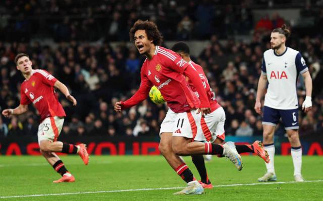 第 63 一分钟,热刺门将福斯特送礼,齐尔克泽破门,曼联 1-3 扳回一城。