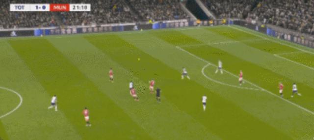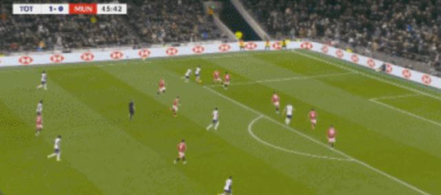 在上半场结束时,曼联仍然落后于热刺。据资料分析,两队控球率55开,曼联 7 第二次射门没有一次打正,也没有创造绝佳的机会,热刺 6 次射门 3 次打正,创造 1 第二次绝佳机会,进攻效率完全获胜。