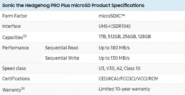 三星与世嘉合作推出索尼克主题 PRO Plus microSD 卡