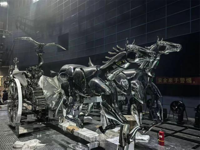 第 26 当哈尔滨冰雪世界进入开场倒计时时,大型全景奇幻秀《王的战车》正在紧张排练,与开场同步表演。在舞台风景和呈现方面,该节目汇集了裸眼 3D、许多科技元素,如仿真技术、激光技术等,尤其是战甲“战马”和“战车”,充满了科技感,令人眼前一亮。