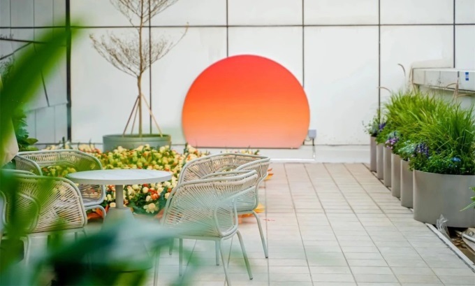 外广场超5500m²休息空间,两个下沉广场和两个高层露台相互映衬,露营草原、有风市场、轻氧花园等休闲区错落有致,结合魅力KTV、EFIVE、蓝带台球俱乐部、电竞蜂、大夹乐等休闲娱乐品牌,打造周边邻里「相聚广场」。