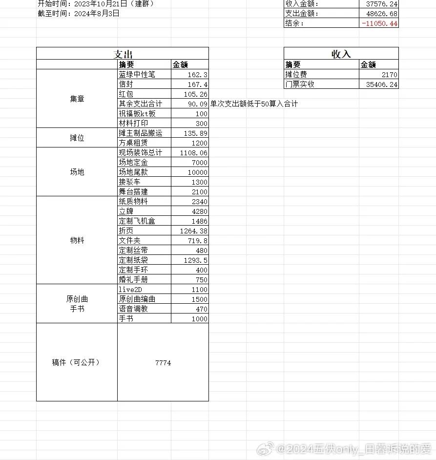 我还看到了很多Only主办方在小红书上发布收支明细,几乎无一例外,大部分都是亏损。
