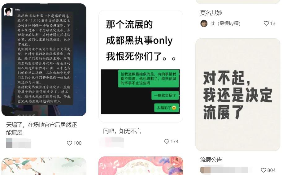 但含有单IP、当地、Only、小标签的活动展览本来就在小信息茧房里,所有的舆论都很难发出醇厚的酒精,甚至在维权方面也没有保障。在这种糟糕的Only感受和参展商愤怒的帖子和责骂下,组织者终于停止了说话,下面就没有声音了。直到现在,我才知道组织者自始至终都没有露面。每个人都对他的名字信息甚至长相一无所知。