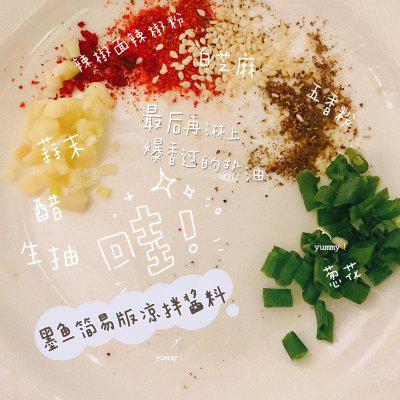 2、将面条放入锅中,煮至断生无硬心后立即捞出,倒出沥干水分备用。 ⚠️不宜久煮 ⚠️因为墨鱼没有买凉面这种面条,所以用了面条,大家都用凉面做哦哦~纯洁!!冷面等水烧开后,烫伤, 5~10 秒即可