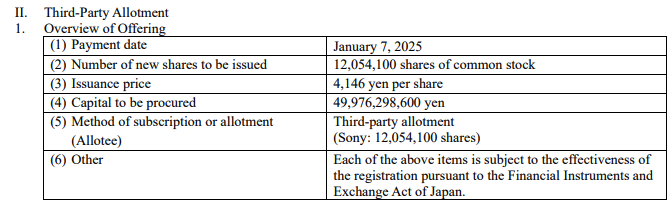 索尼作为协议的一部分,同意在未来一年内原则上不出售配售获得的股票,除非提前获得角川的书面同意,否则原则上不会将角川的股票出售给有竞争力的第三方。