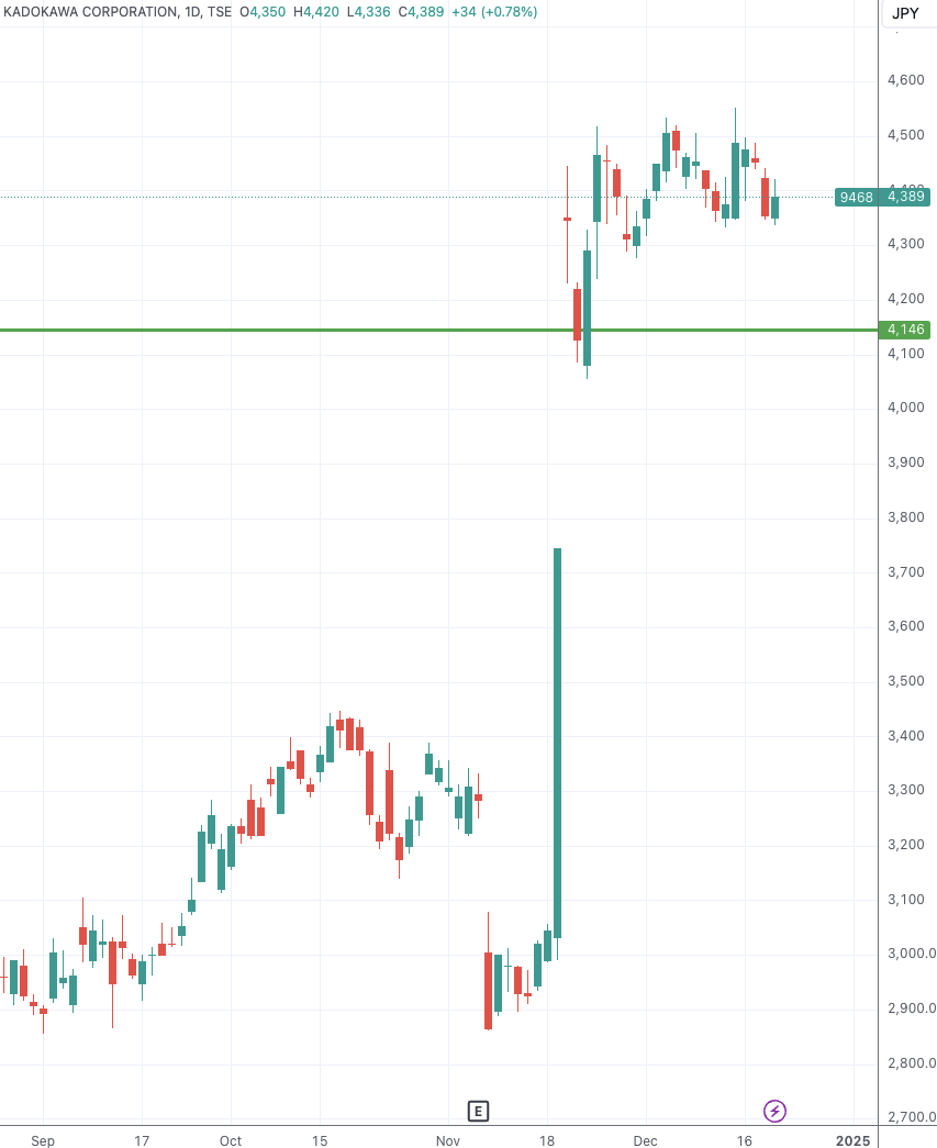根据当地媒体援引知情人士透露,索尼计划派一名董事到角川,但不打算进一步收购股权。。这也代表了整笔交易的规格,远低于之前市场的预期——市场传言称索尼将全面收购角川,从金融市场的角度来看,双方公布的交易价格(4146日元/股)也低于周四收盘时的角川股价。