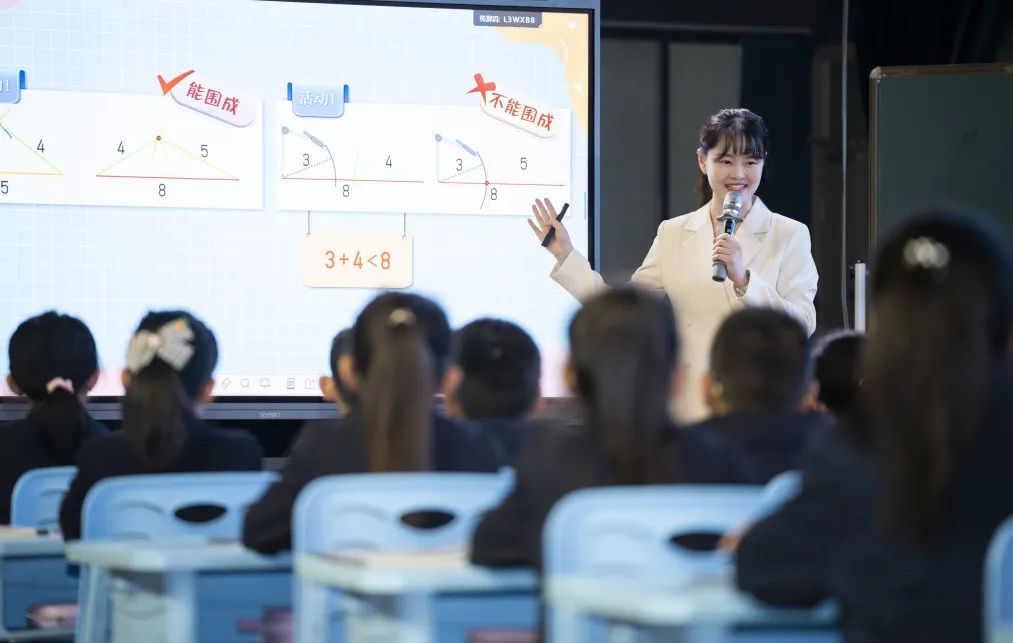 在本次研讨会上,申思老师教授的《三角形三边关系》从生活现实出发,制定了多个内容环环相扣、难度逐步提升的学习板块,指导学生结合基本事实感知推理思想,提高几何直观和推理能力。