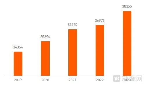 中国医院数量(单位:家)2019-2023年 ,资料来源:2019-2023医疗服务统计公报