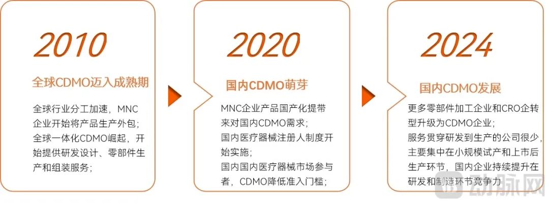 国内CDMO公司发展迅速。特别是2024年,他们在内窥镜、微创手术、体外诊断、激光医疗、CGM等多个高增长领域崭露头角。内窥镜领域的需求增长尤为明显。一次性内窥镜的发展简化了产品结构,降低了成本控制的难度,进而催生了许多代工需求。在体外诊断领域,由于仪器和试剂的生产差异以及R&D和制造的长期特性,CDMO的需求也很大。这类产品一般结构复杂,下游市场对渠道依赖性强,对成本控制和用量要求较高,进一步促进了CDMO需求的增长。通过提供全流程服务,国内CDMO公司降低了行业的进入门槛,使国内企业能够快速响应市场需求,加快产品上市,从而在激烈的市场竞争中占据优势。