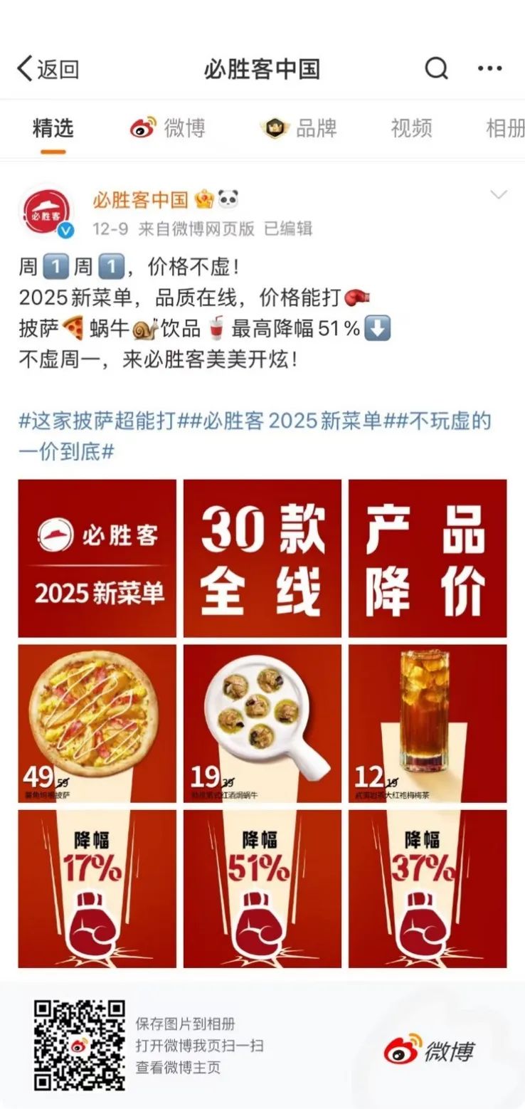 12月2日,必胜客在全国范围内推出了2025年全新菜单,其中最引人注目的是全线30款产品都有不同程度的降价,最高降幅达到51%。前所未有的折扣确实很吸引人,但不禁要考虑这么大的折扣是否会影响必胜客的利润结构。