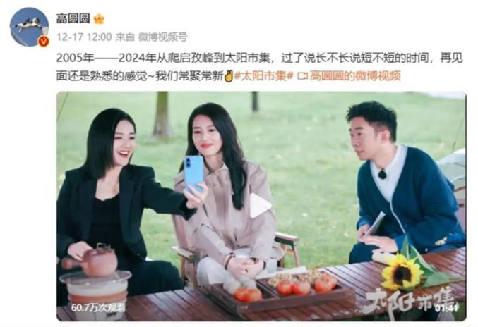 节目播出后,高圆圆发了一条信息回应:“从2005年到2024年,我们从爬启孜峰到太阳市场。过了一段时间,我们还是觉得熟悉了再见面~我们经常聚在一起,永远是新的。” 另外,歌星张杰还分享了谢娜的博文帮她宣传:“在线观看,下载观看, 看看汽车,看看飞机, 回家看看,期期看看。”
