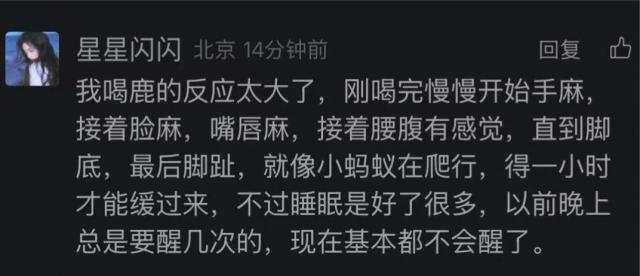 以前有老业主的描述,喝鹿,就像打鸡血一样,精力充沛。不得了