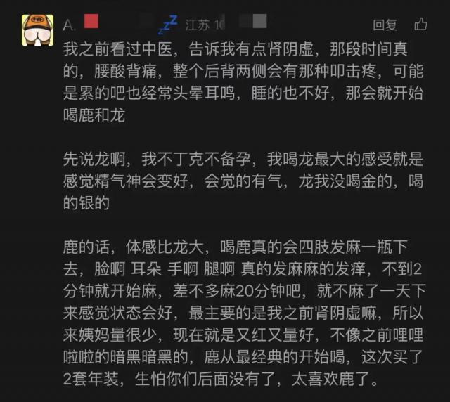 例如� � 这位来自山东的老业主,分娩后开始喝鹿(怀孕时不能喝)。她感觉很重,因为血液堵塞,可以帮助我们促进每一个细小血管的微循环。