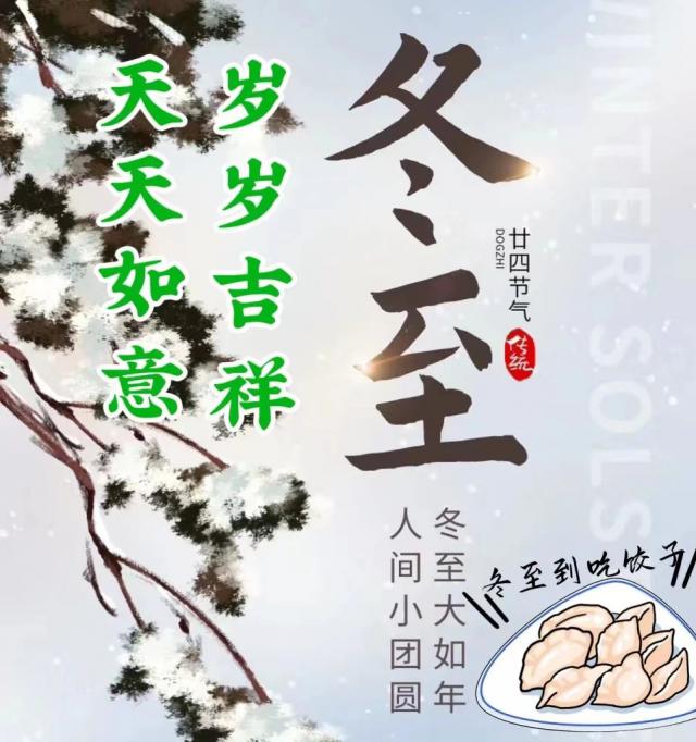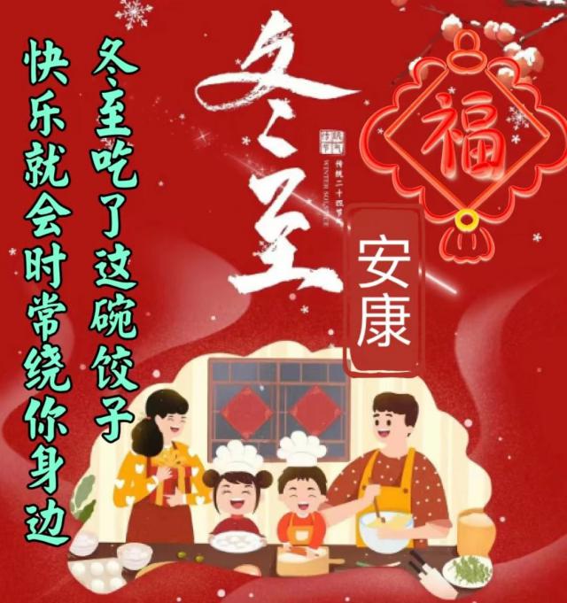 冬至到了,进入九天。天气变冷了,越来越暖和了。白天短,最终会延期。冬至,吃饺子,家庭聚会,人们健康。吃饺子,财富进步,人们团聚。友谊温暖,祝福侃:节日快乐,幸福!