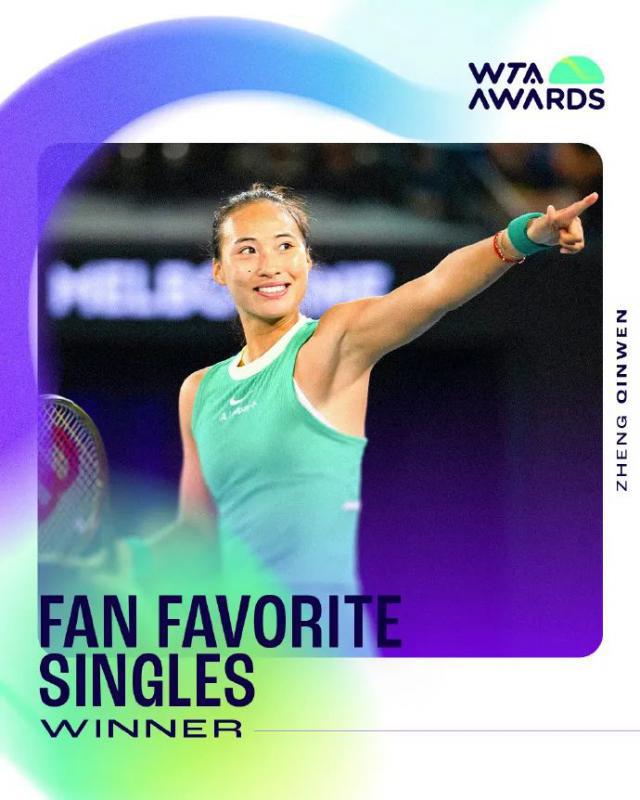 对此,WTA 国际妇女网球协会发表了恭喜信息,称郑钦文为 " 人气女王 "。