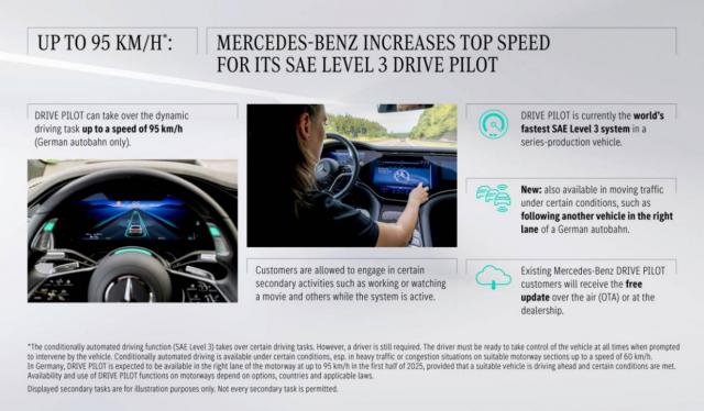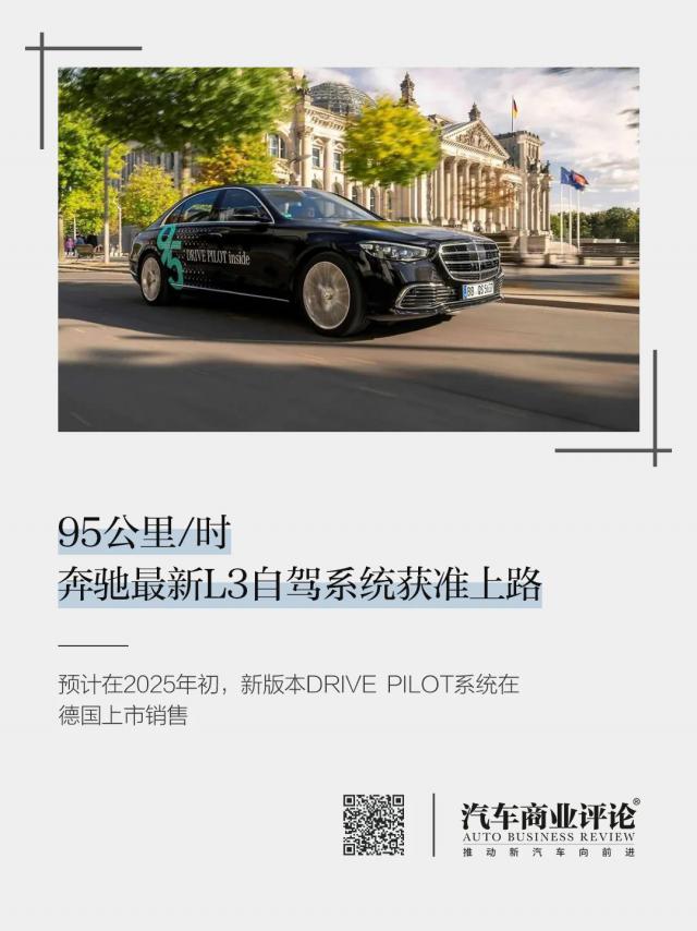 奔驰最新L3自驾系统95公里/小时获准上道。