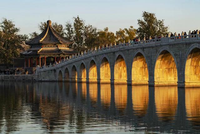 颐和园十七孔桥“金光穿洞”