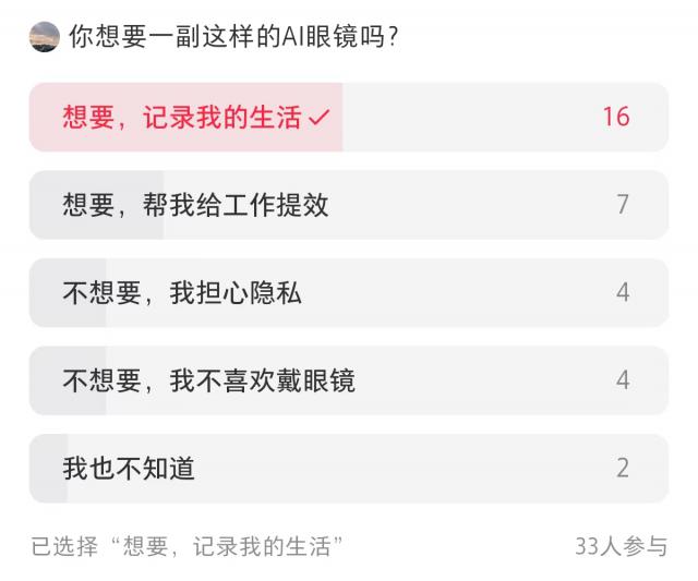 从社交平台的一些投票结果也可以看出,大家对于这种廉价有趣的“轻盈” AI "设备更感兴趣,并且表达了需求,可以预见,闪极 AI 以“拍拍镜”为代表的轻量级智能产品,将成为明年的亮点。