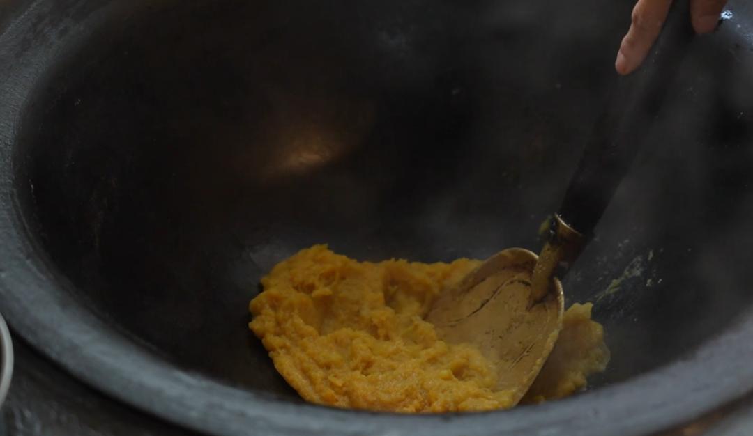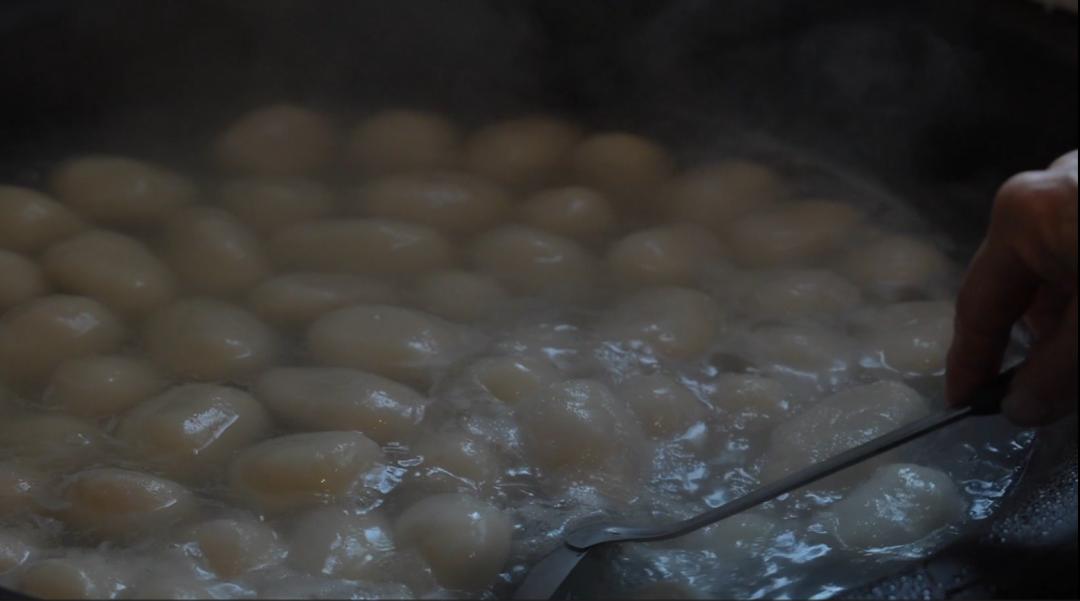 “饺子馅是我们自己种的红薯,又香又甜。”村民高美英笑着说。从地里挖出来的新鲜红薯洗净去皮,蒸熟后碾成泥。锅里烧开后,猪油和糖一起融化,然后加入红薯泥翻炒,香味就会扑面而来。