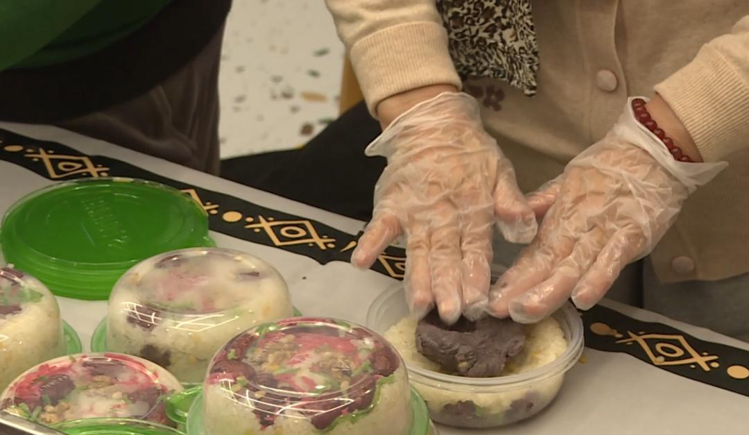 12月19日下午,我希望在社区的“我嘉邻里中心”里,一场独特的传统美食活动正在如火如荼地进行。走进我嘉餐厅,仿佛瞬间穿越回童年的客厅,邻居们聚在一起,忙碌而快乐。宋传新和他的邻居正在做特色美食——八宝饭。与常规做法不同,宋传新在大米中加入松子来提高新鲜度,这使得这种传统食物更加美味。