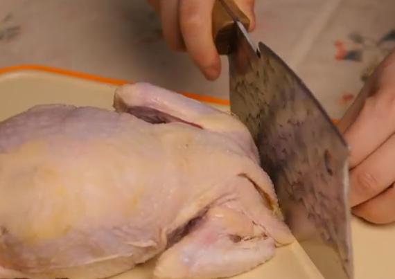 清水洗净,清除鸡头、鸡尾和鸡爪。