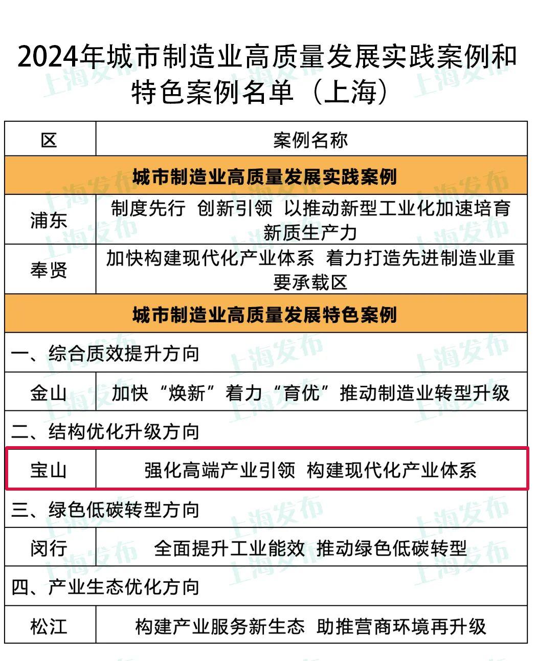 原标题:《上海6个案例当选2024年全国城市制造业优质发展案例名单》→》