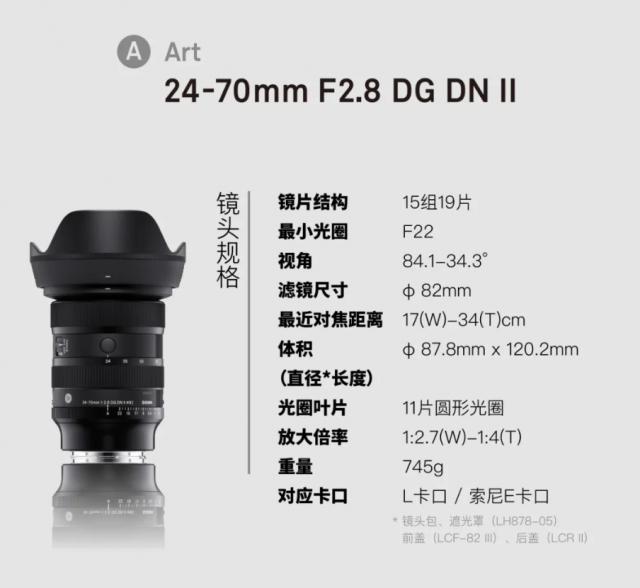 IT 家人注意到,适马 24-70mm F2.8 DG DN ll|Art 今年的镜头国行版 5 每月上市,售价 8688 元。这个镜头的选择,据报道 15 组 19 影片的镜片结构,包括 6 片 FLD 镜片、2 片 SLD 镜片和 5 非球面镜片,在广角端,最大放大倍率为 1:2.7,同时声称“在不减少镜片数量的情况下,尺寸比以前的型号小了很多。 7%,重量轻 10% "具体重量为 745g。