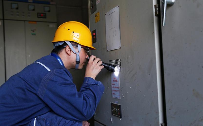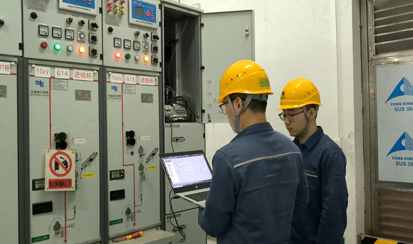 广东南部电网江门江海供电局主动深入农村配电室进行检查和维护。