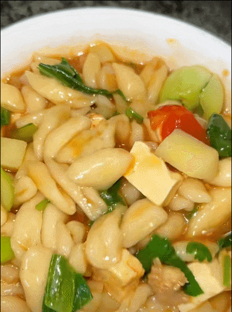 蔬菜,如土豆、西红柿、豆腐、胡萝卜等。