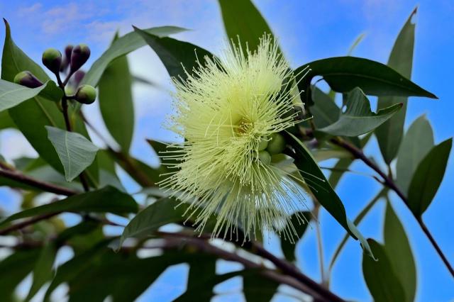 水蒲桃的花。水蒲桃和增城胭脂红番石榴,我们经常吃,都是桃金娘科。水果可以吃,但经常有害虫。然而,由于冬至开花的水蒲桃温度低,害虫少,结出来的水果很少有害虫。来源 @网络