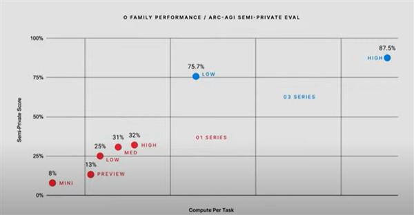 AGI o3在相关测试中 最佳成绩 超出人类水平门槛的87.5 85,显示迈向类人智能的突破。