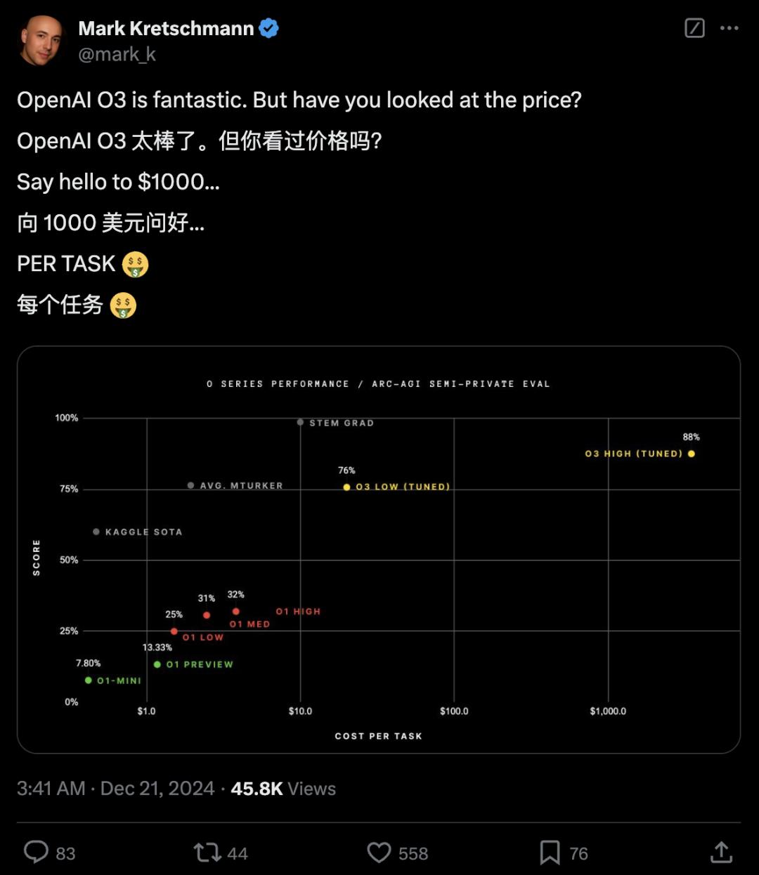 很多网友除了惊叹o3惊人的表现外,还担心o3可能导致的高任务成本。