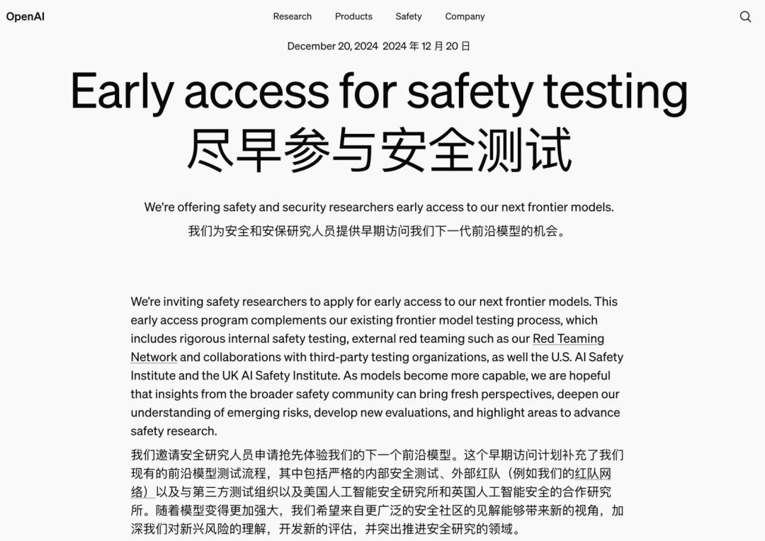 目前,OpenAI已经向安全研究人员和合作伙伴开放了测试申请,希望通过更多的实际应用测试,进一步提高模型的安全性和可靠性。