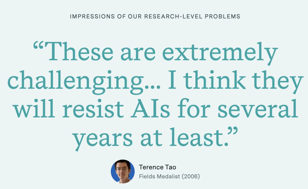 最难的前沿数学测试: 25.2%-其它模型不超过2%,数学天才陶哲轩表示,这次测试“可能会让AI难倒好几年”