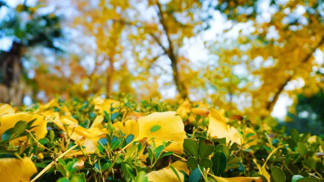 地面上形成一片片金色的斑点