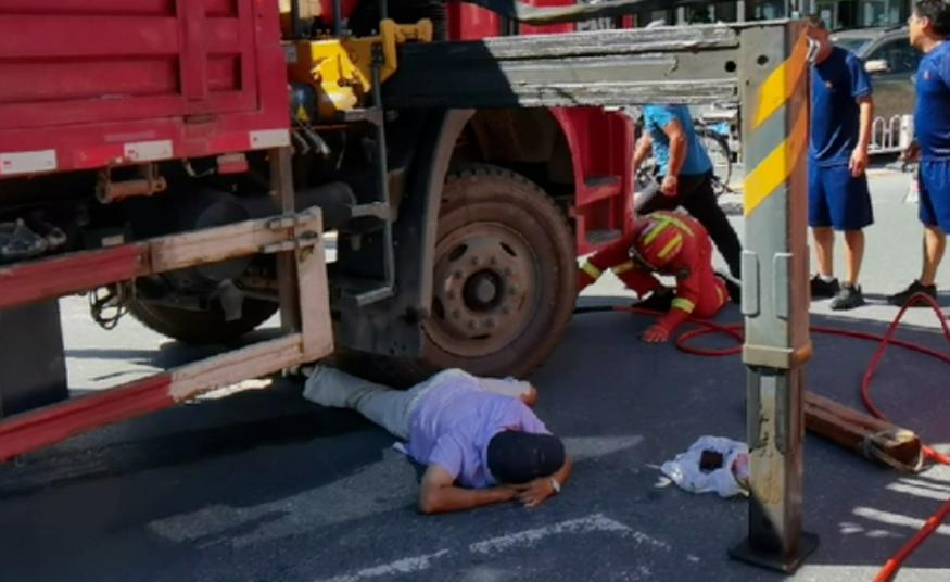 2022年8月20日,辽宁大连发生一起交通事故。一名男子被卷入一辆大卡车,被卷曲的左腿被卡车轮胎压住,无法移动。消防队员立即赶到现场。经过4分钟的救援,该男子被成功救出,然后移交给120送往医院治疗。