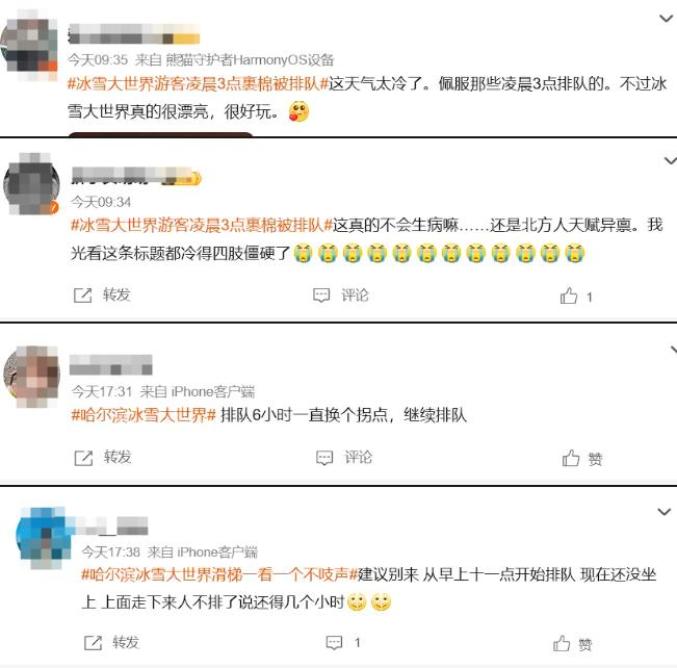 12月21日上午7点,记者从哈尔滨文化旅游部门了解到,确实有人在凌晨3点开始排队,6点左右,公园外排起了长队。