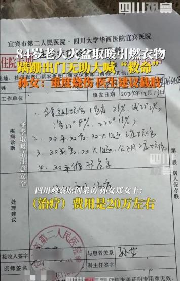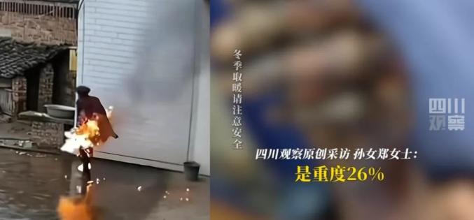 原题:“担心!84岁的老人身上的衣服被点燃,造成严重烧伤”