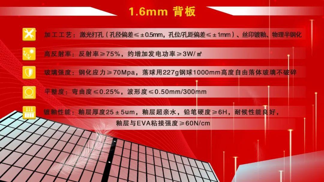 宜兴新能源1.6毫米超薄光伏玻璃产品具有更轻、更高透明度的特点,每平方米重量仅为4公斤,比目前主流的2.0毫米玻璃重量进一步缓解20%,在重量和成本上具有明显优势,更符合BIPV场景中轻质高效的需求,对光伏行业“降低成本”具有重要意义。与3.2mm玻璃相比,1.6mm玻璃的生产理论上可以增加近两倍的产能,同时可以提高玻璃的产能,降低单位产品的生产能耗。