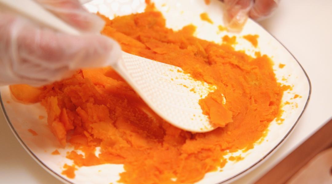 3. 将煮熟的红薯放入容器中,压成泥状。