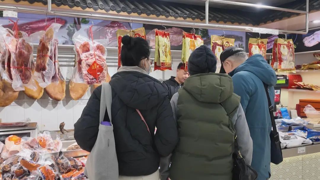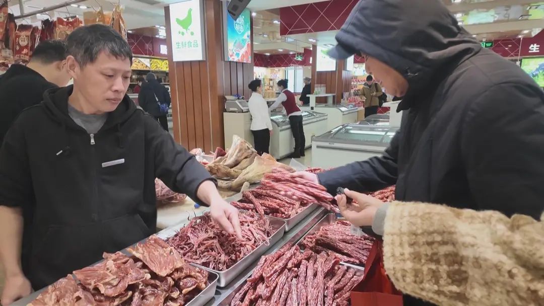 不仅腊肉区非常热闹,食品店的小吃、果脯、海鲜和南北各种干货区也很拥挤。未来,市民将沉浸在计划年夜饭的忙碌和喜悦中,期待充满温暖和美味的团圆之夜。