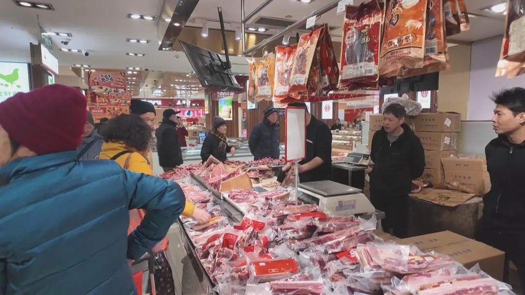 工作人员介绍:“考虑到今年春节的早期,我们已经准备好了所有的货源,包括上海人过年必备的传统食品,如腊鸡腿、手工和广式香肠、火腿和咸肉。此外,咸鸡、咸鹅等。也会陆续到货,这是过年不可或缺的美味。”