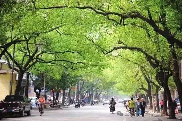 街道两旁,梧桐繁茂,绿意盎然,