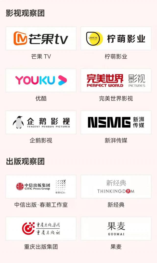 2021 2000年,豆瓣阅读第三届拉力赛影视观察小组成员为芒果。 TV、柠萌影业,企鹅影业,猫眼影业,儒意影业,华谊兄弟, 2024 年度第六届豆瓣阅读长篇拉力赛影视观察团为优爱腾芒,至今四大视频平台全部到场。现在,豆瓣阅读与视频平台的合作仍在深化,比如 2023 年与优酷联合推出了以“古风世界”为主题的征文活动。