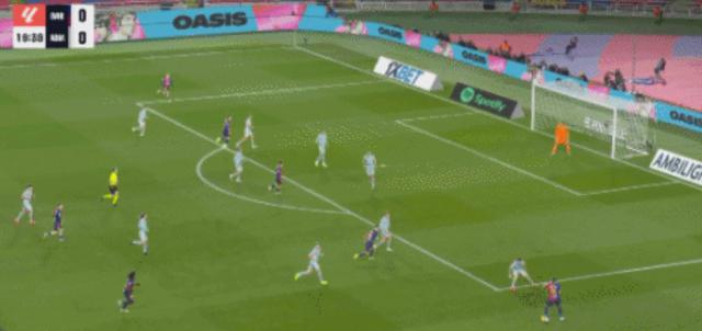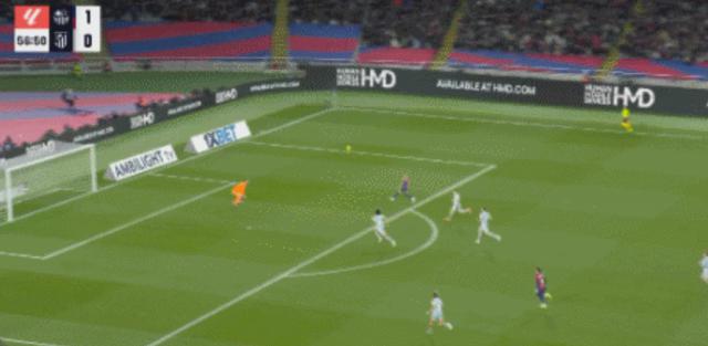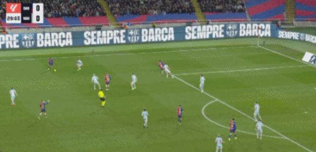 第 57 佩德里在几分钟内发出妙传,拉菲尼亚单枪击中横梁弹出,莱万跟进补射又被堵漏。